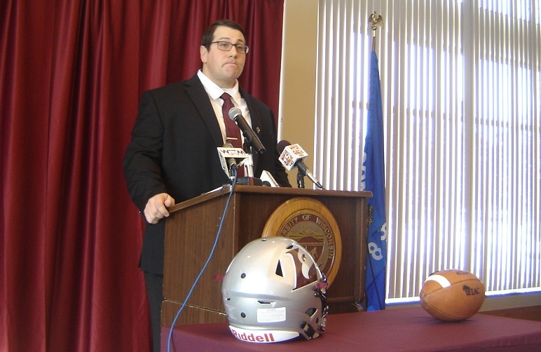 Schmidt was introduced today, the 13th head football coach in UW-L history. Less than a decade ago, the Menomonie, Wis., native was earning letters for the Eagles in both football and baseball, having graduated in 2008.